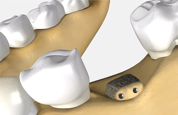 When a tooth is lost and not immediately replaced, the bone reacts to this event by 'shrinking back'. The bone becomes thinner from a width perspective and the bone height is frequently reduced. This process is known as bone resorption. In order to place implants, it is necessary to rebuild the bone width and height through regenerative surgical therapy. Bone grafting of the ridge is almost always required to enable accurate placement of dental implants. The grafting is completed utilizing tissue bank and/or synthetic bone particles combined with collagen membranes. It is a highly predictable procedure.