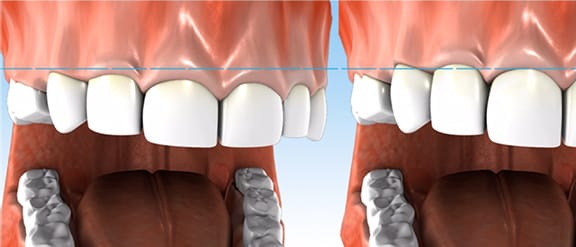During this procedure, excess gum and bone tissue is re-shaped to expose more of the natural tooth. This can be done to one tooth, to even your gum line, or to several teeth to expose a natural, broad smile.