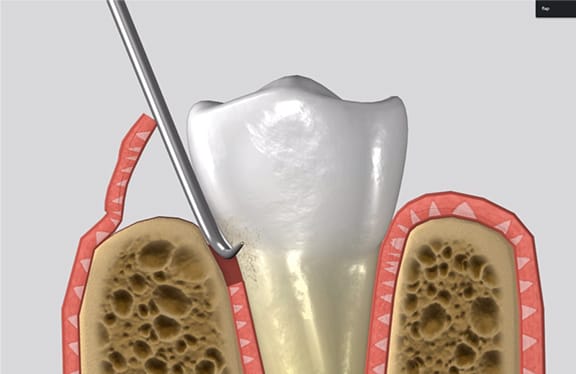 When deep pockets between teeth and gums (6 millimeters or deeper) are present, it is difficult for a dentist to thoroughly remove the plaque and tartar. Gum flap surgery is a procedure where the gum flap is lifted away from the tooth. Diseased tissue and sometimes bone is removed. The rough surfaces of the tooth are then smoothed by root planing. The area is medicated and the gum flap is replaced and sutured allowing the bone and gum tissue to heal.