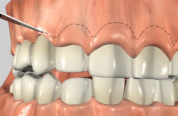 A gum lift may be performed to create a more even gum line. Patients with a gummy smile can quickly and safely have unwanted tissue removed, thus exposing more tooth to shape a more attractive smile.