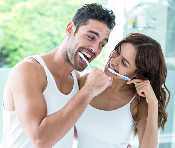 - Brush teeth gently using a circular motion along the outside and inside of the tooth surface.