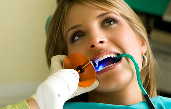 The surface of your tooth will be etched and a special cleaning/conditioning solution will be applied to allow the bonding resin to adhere to your tooth. Next, we will apply the bonding resin which is putty-like in consistency and can be molded into the desired shape necessary for your specific situation. Once the resin has been properly placed, molded and smoothed, we will use a special ultraviolet light that quickly hardens the resin.